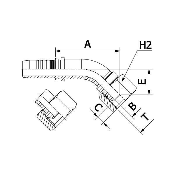 BRAIDFIT TYPE BS STANDARD CONNECTIONS 45° BSP FEMALE SWEPT ELBOW 60° CONE – BS 5200 ISO 12151-6