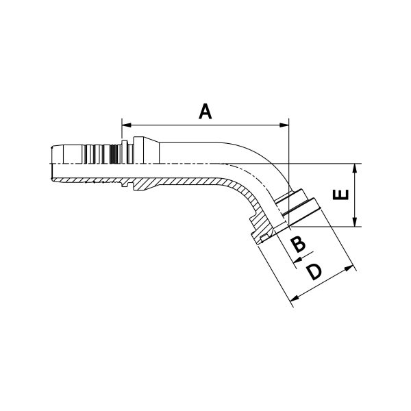 BRAIDFIT TYPE SAE STANDARD CONNECTIONS 45° JIC FEMALE SWEPT ELBOW 37° CONE SEAT – SAE J516 ISO 12151-5