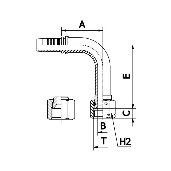 BRAIDFIT TYPE SAE STANDARD CONNECTIONS 90° JIC FEMALE LONG DROP ELBOW 37° CONE SEAT – SAE J516 ISO 12151-5