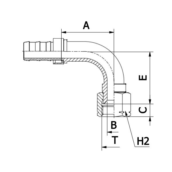 PUSHLOCK TYPE SAE STANDARD CONNECTIONS 90° JIC FEMALE SWEPT ELBOW 37° CONE SEAT SAE J516/ISO 12151-5